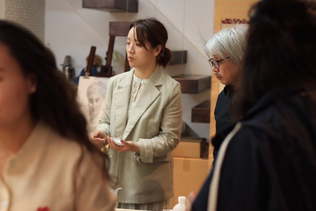 4/10〜4/12 国際水墨大展の出展者向けに日本画講習を開催しました。支持体作りや絵の具の溶き方などの基本的な内容を盛り込みながらも、3日間という短期間で完成させるという濃密な講習でした。最終日には目白庭園で講師を招いて本格的なお茶会を行い、日本の文化を存分に堪能していただきました。